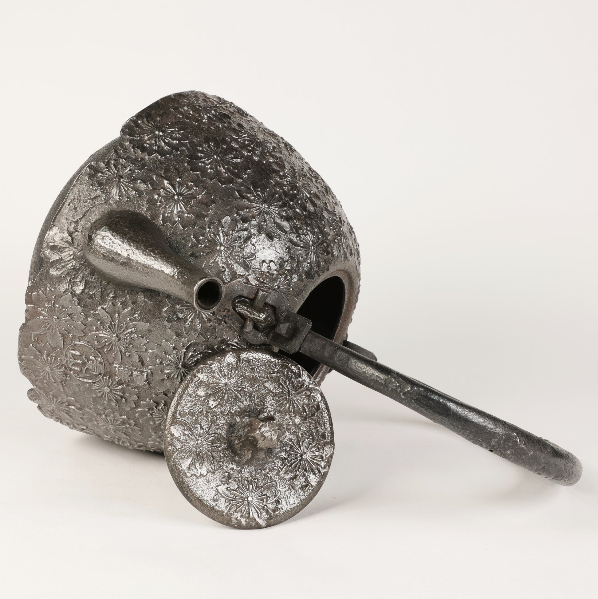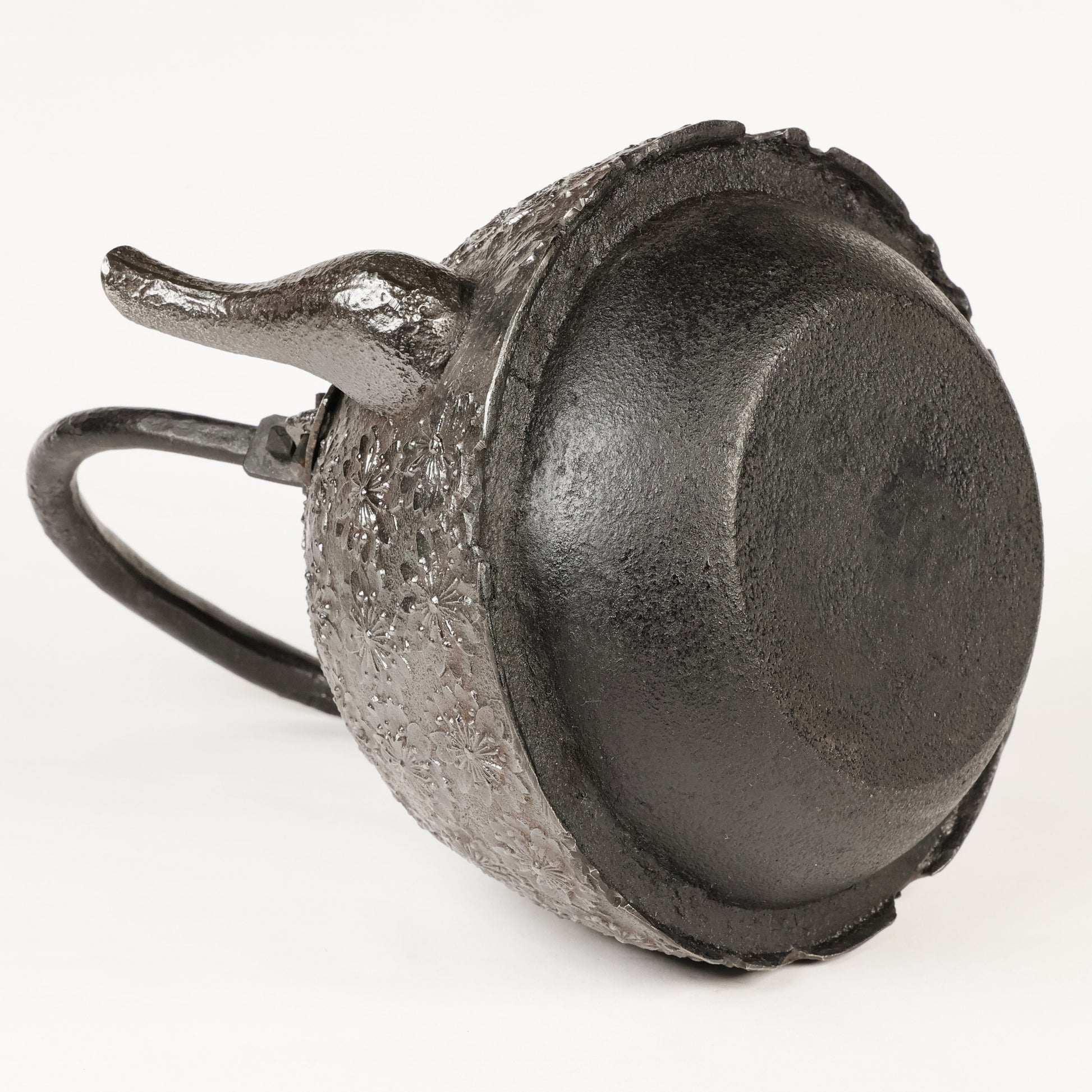 The main difference between iron kettle (Tetsubin) and iron teapot (Tetsu Kyusu) is that the former is for boiling water and can be used over an open flame. The latter is for brewing tea and should not be used over an open flame. This exhibition product is the former.