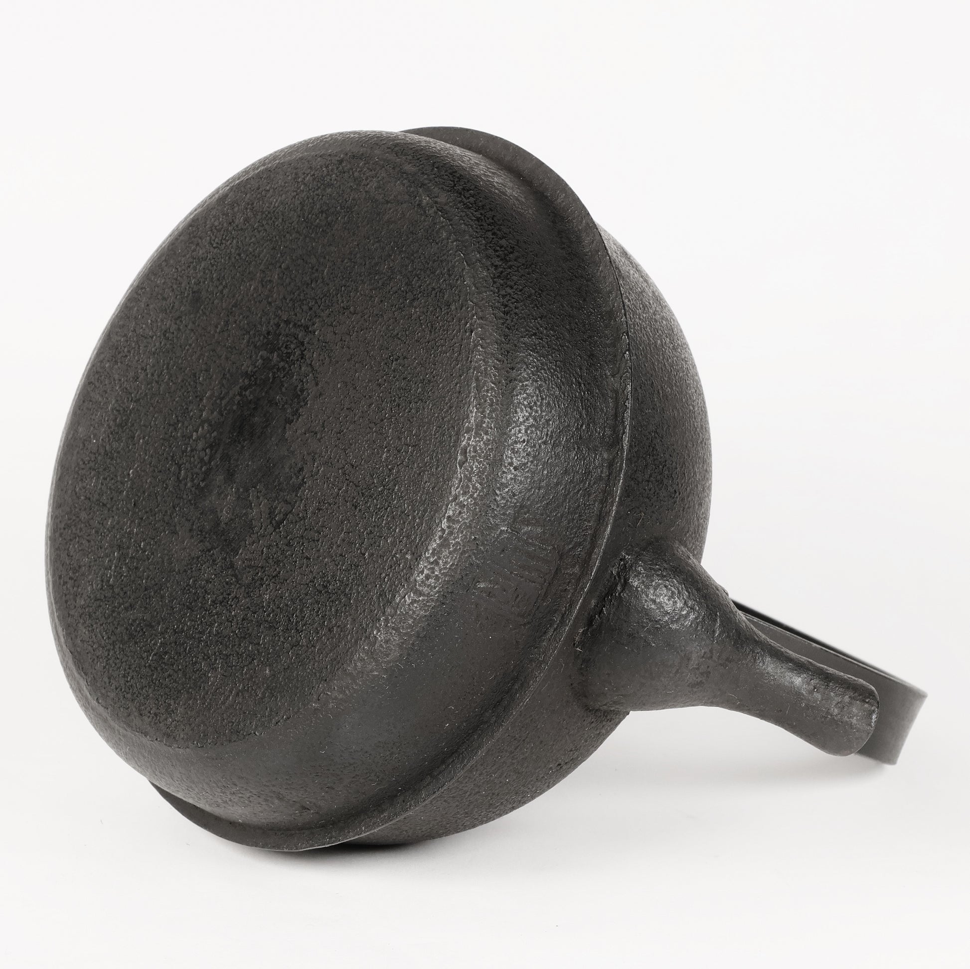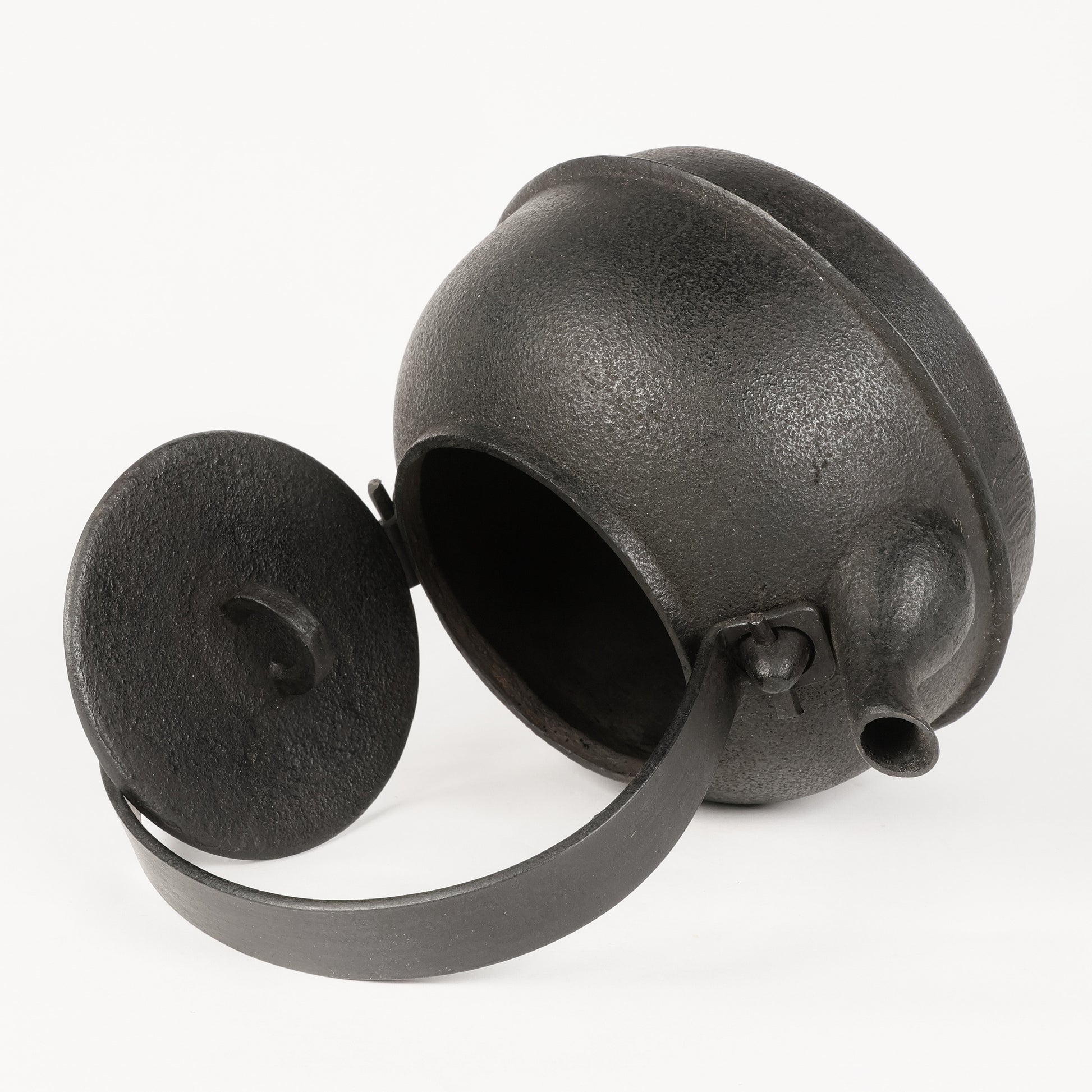 The main difference between iron kettle (Tetsubin) and iron teapot (Tetsu Kyusu) is that the former is for boiling water and can be used over an open flame. The latter is for brewing tea and should not be used over an open flame. This exhibition product is the former.