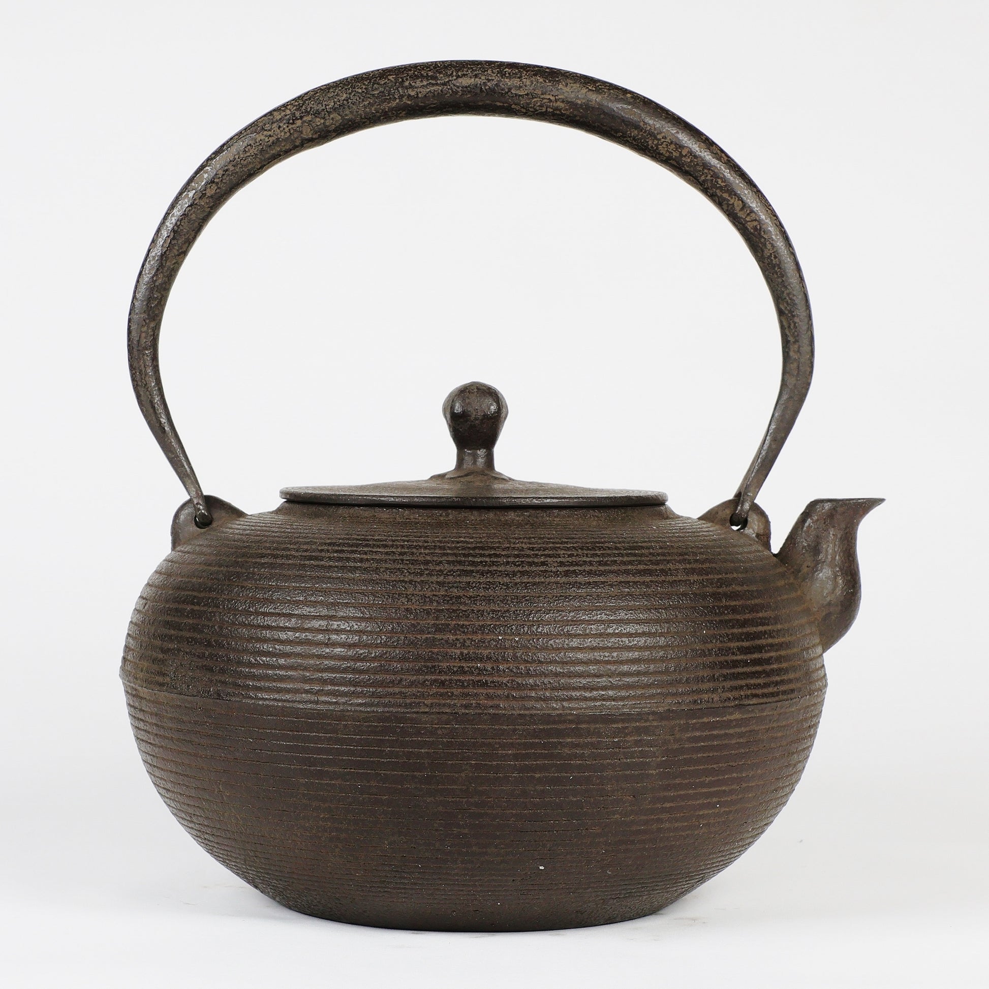 The main difference between iron kettle (Tetsubin) and iron teapot (Tetsu Kyusu) is that the former is for boiling water and can be used over an open flame. The latter is for brewing tea and should not be used over an open flame. This exhibition product is the former.