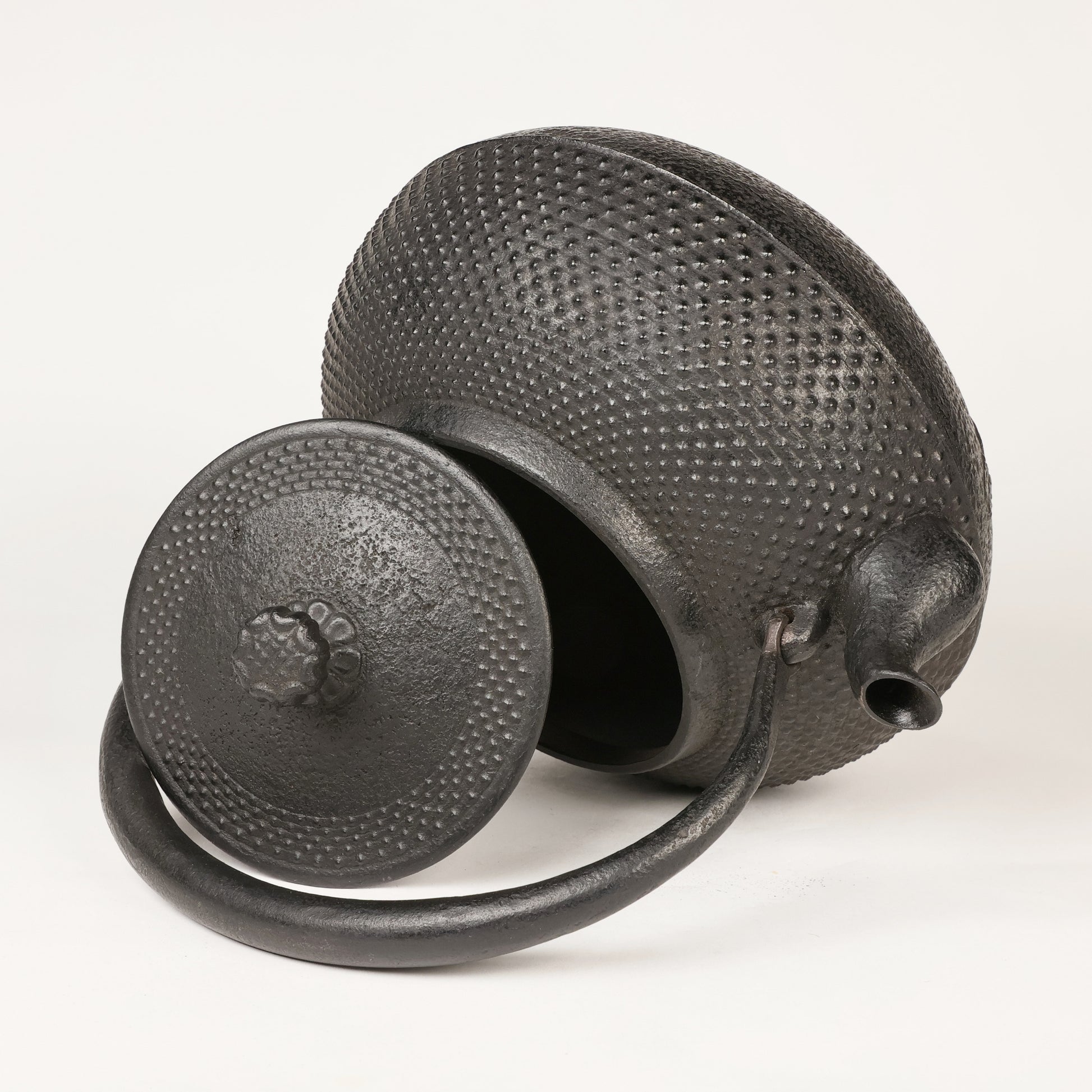 The main difference between iron kettle (Tetsubin) and iron teapot (Tetsu Kyusu) is that the former is for boiling water and can be used over an open flame. The latter is for brewing tea and should not be used over an open flame. This exhibition product is the former.